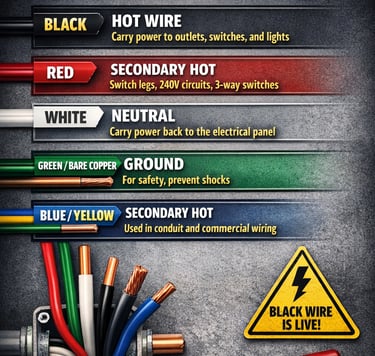 If you’ve ever opened an electrical box or looked behind an outlet, you’ve probably noticed that the wires inside are different colors. These colors aren’t random — they follow a system designed to help electricians quickly identify what each wire does.