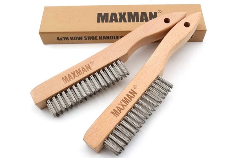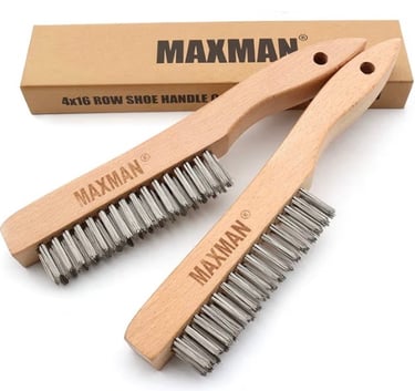 A steel wire brush is another useful preparation tool. The MAXMAN wire brush set works well for removing light rust, debris, or oxidation from metal surfaces before welding.