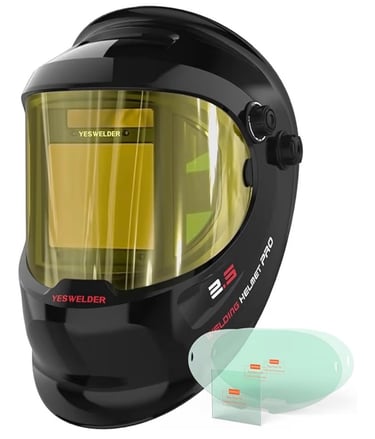The YESWELDER auto darkening welding helmet is a popular beginner option because it offers a wide viewing area and automatically adjusts the shade level while welding.
