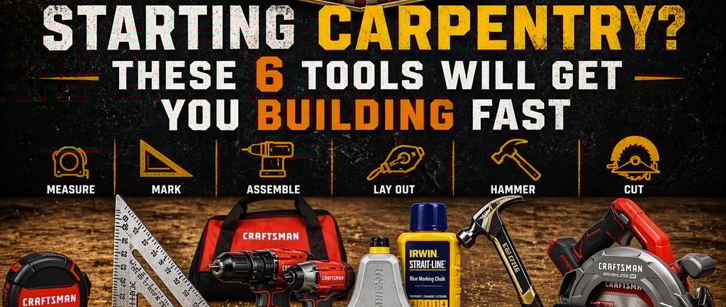 Starting carpentry? Learn the 6 essential tools beginners need, including a tape measure, speed square, drill, circular saw, and more to start building projects fast.