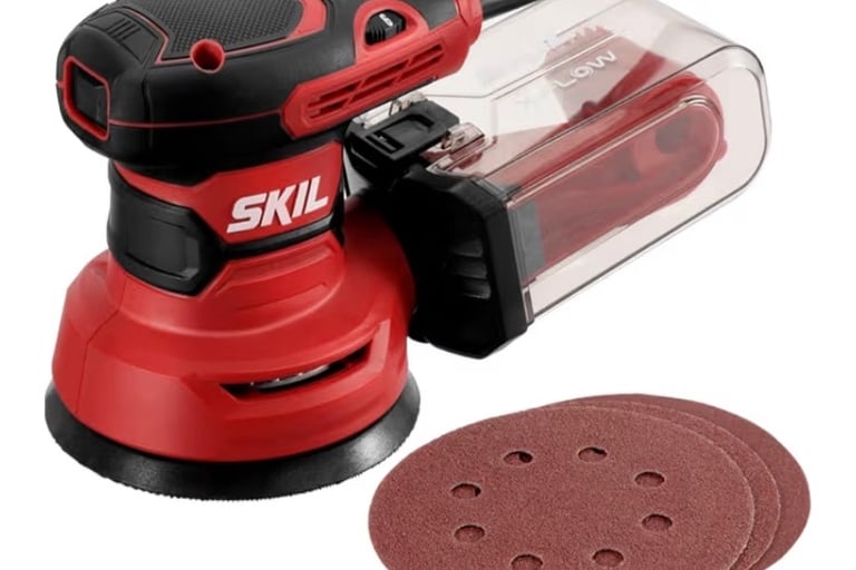 The SKIL 5” Random Orbital Sander on Amazon for smoothing a sticking door edge
