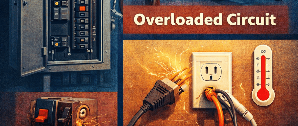 An overloaded circuit occurs when too many electrical devices are drawing power from the same circuit at the same time. When the electrical load exceeds the breaker’s capacity, the breaker shuts off power to prevent the wires from overheating.